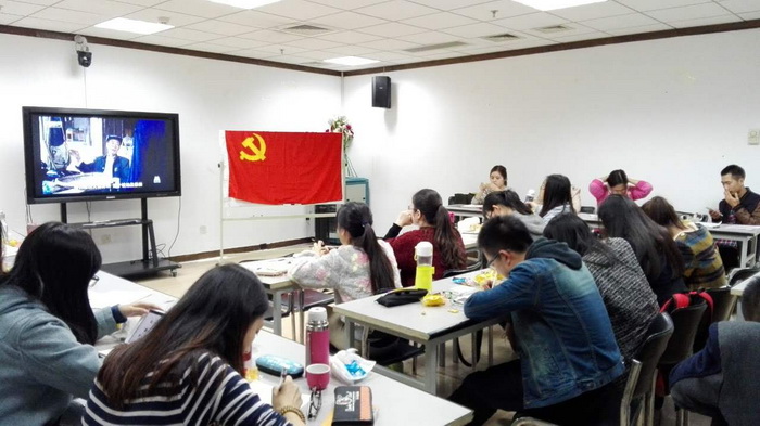 为了促进党员同学自觉学习党的基本知识,提升研究生党员的基本素养和为人民服务的意识,11月16日晚上六点,2015级汉语国际教育(2)班党支部在主楼308举办了“学理论 看经典”主题党日活动。