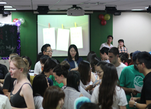 活动在主持人热情洋溢的欢迎词和充满激情和乐趣的抢凳子游戏中拉开序幕。接下来的“双龙戏珠”吹运气球游戏、交际任务卡互动时间、清明节中国传统文化知识小解说和“正话反说”游戏等环节更是吸引了同学们的注意力。不管是中国员工还是外国职工,都积极地参与了到了各个环节当中,活动的现场一片欢声笑语。在交际任务卡互动时间的环节,大家一起走到场地中央,交换各自的信息并在对方的手卡上签名,现场气氛达到了一个高潮。沙龙结束后,全体人员都主动留下来合影留念,很多中外朋友还互相留下了联络方式。