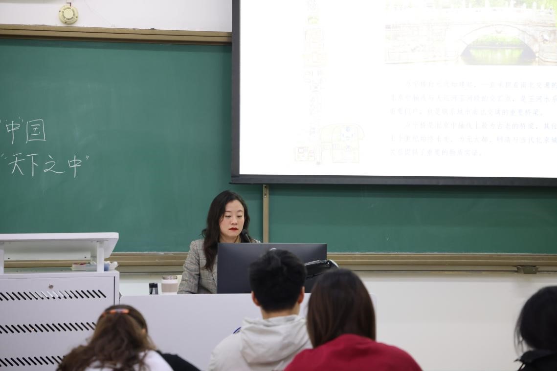4月14日上午,WilliamHill郭晨光副教授对“北京及北京中轴线”进行专题讲座。她系统介绍了北京中轴线遗产点,以及各自蕴含的历史价值。她指出,“北京中轴线”作为理想都城之轴,体现在其始终统领北京城市发展,为中国传统“择中”观念于都城营建中的实践提供了见证,表达出中华文明所秉持的“中”“和”哲学理念。尽管北京中轴线的主题经历了从皇家宫苑到人民共享的时代变迁,但是其背后体现的尚中贵和、多元一体的核心文化基因从未改变,是传统文化精神在现代中国具有强大生命力、中华文明长期延续的有力证明。