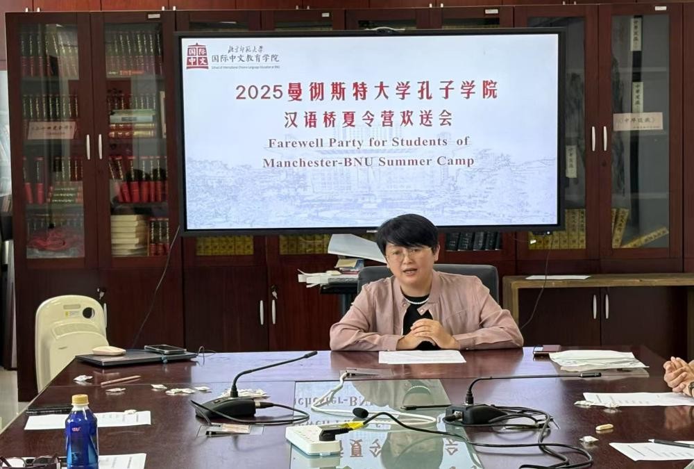 其中一位学员抽到了这样的题目:请用中文说一说“海内存知己,天涯若比邻。”她说:“我们在曼彻斯特有很多喜欢学中文的朋友,因为学习汉语,我们来到中国,认识了很多中国的朋友,这些朋友之前很远,现在很近。”杨教授赞许地补充道,“虽然我们身处不同的国家和城市,但由于共同的兴趣和对中文的热爱,我们跨越了地域的限制,建立了深厚的友谊。曼大与北师大的友谊,正如‘海内存知己,天涯若比邻’这句诗所说,哪怕相隔千里,我们依然能心心相通,携手并进。”