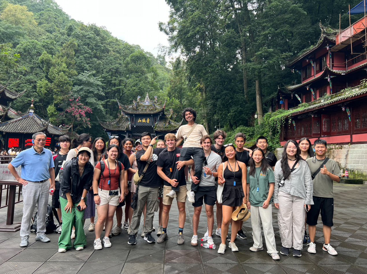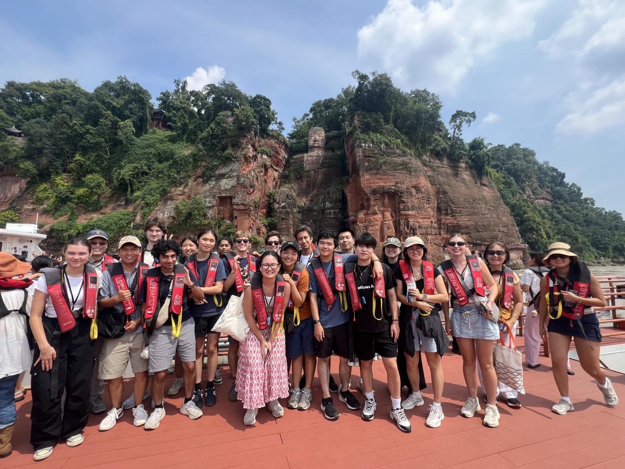 而成都,则让同学们看到了中国城市的 “慢生活” 与 “新活力”。杜甫草堂里,竹林掩映、流水潺潺,同学们跟着导游一边游览一边品读杜甫的诗句,感受 “诗圣” 的家国情怀;三星堆博物馆里,青铜神树、纵目面具等神秘文物,让大家惊叹于古蜀文明的独特与璀璨;青城山脚下,青石板路蜿蜒向上,山间云雾缭绕,同学们一边登山,一边感受 “青城天下幽” 的意境;面对历经千年的风雨沧桑依旧保持着庄严与神秘的乐山大佛,大家禁不住感叹千年文化的沉淀与信仰的力量;川剧表演中的 “变脸” 绝技更是让大家眼前一亮,演员们瞬间变换的脸谱,让同学们感受到了川剧的神奇魅力。 看熊猫、吃火锅、体验采耳……同学们穿行于成都的街头巷尾,体验地道四川人的生活乐趣。